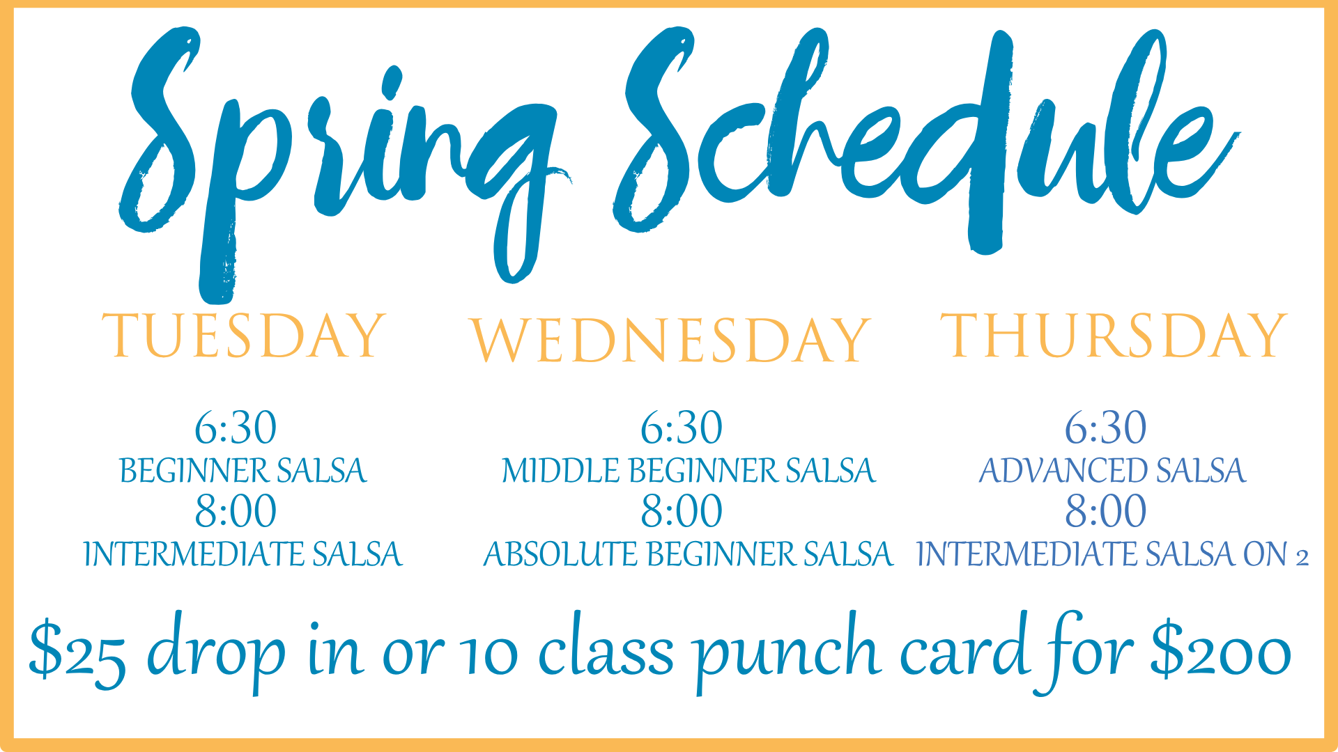 If you have no salsa or minimal salsa (‘I took a class for a few weeks 10 years ago’ or ‘I took a class at a bar in the Caribbean on vacation’) dance experience, you’ll need an Absolute Beginner Series!! We run three per year, September, January and April.