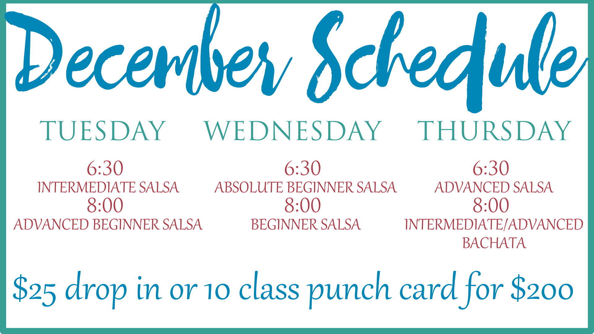 New Absolute Beginner Salsa Series will begin on January 13th! This class is designed with the absolute beginner in mind and there is no experience needed. We would love to have you join us!